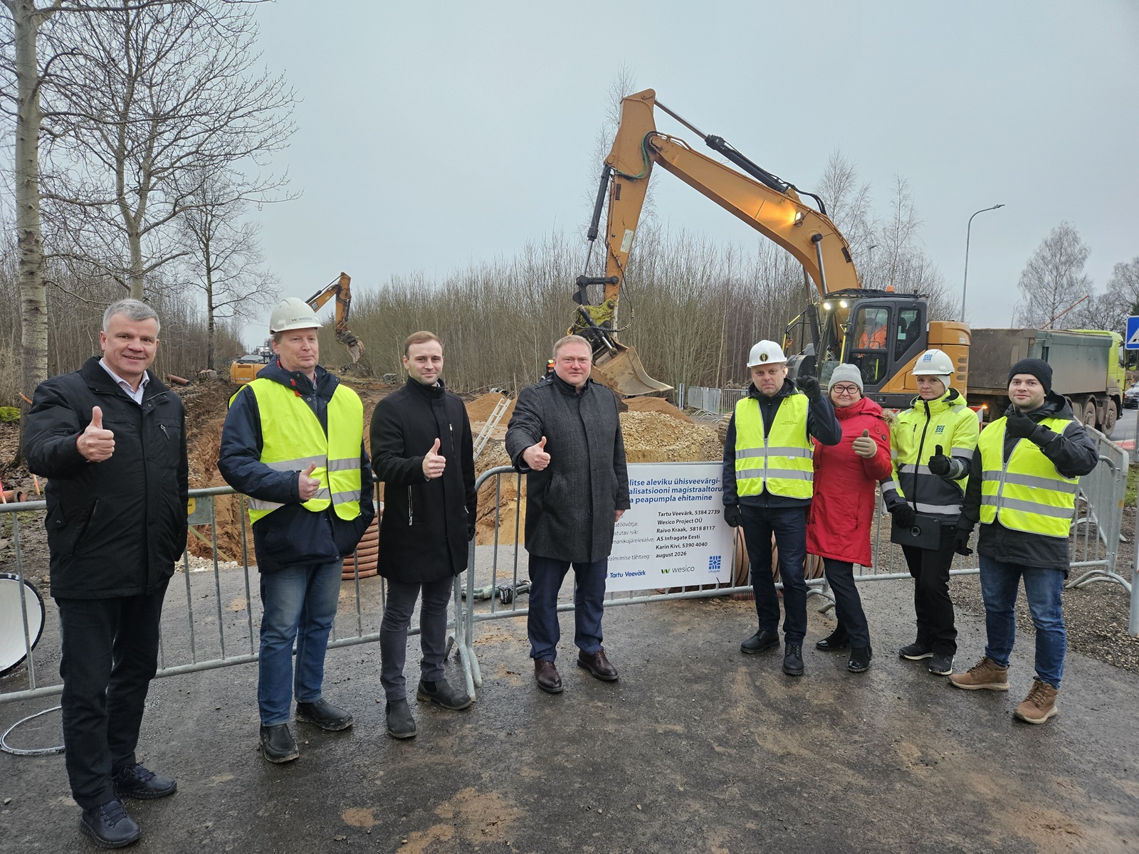 Kambja Vallavalitsuse, AS Tartu Veevärk, Wesico Project OÜ, Infragate Eesti OÜ esindajad Külitse ühisveevärgi ja -kanalisatsiooni esimese etapi ehitusel. Foto: Marko Ojakivi